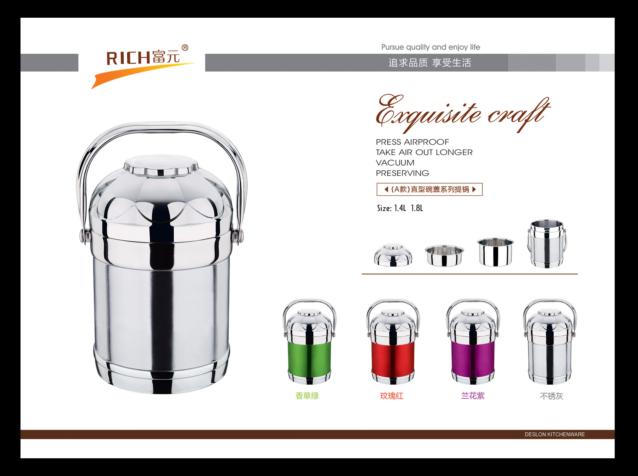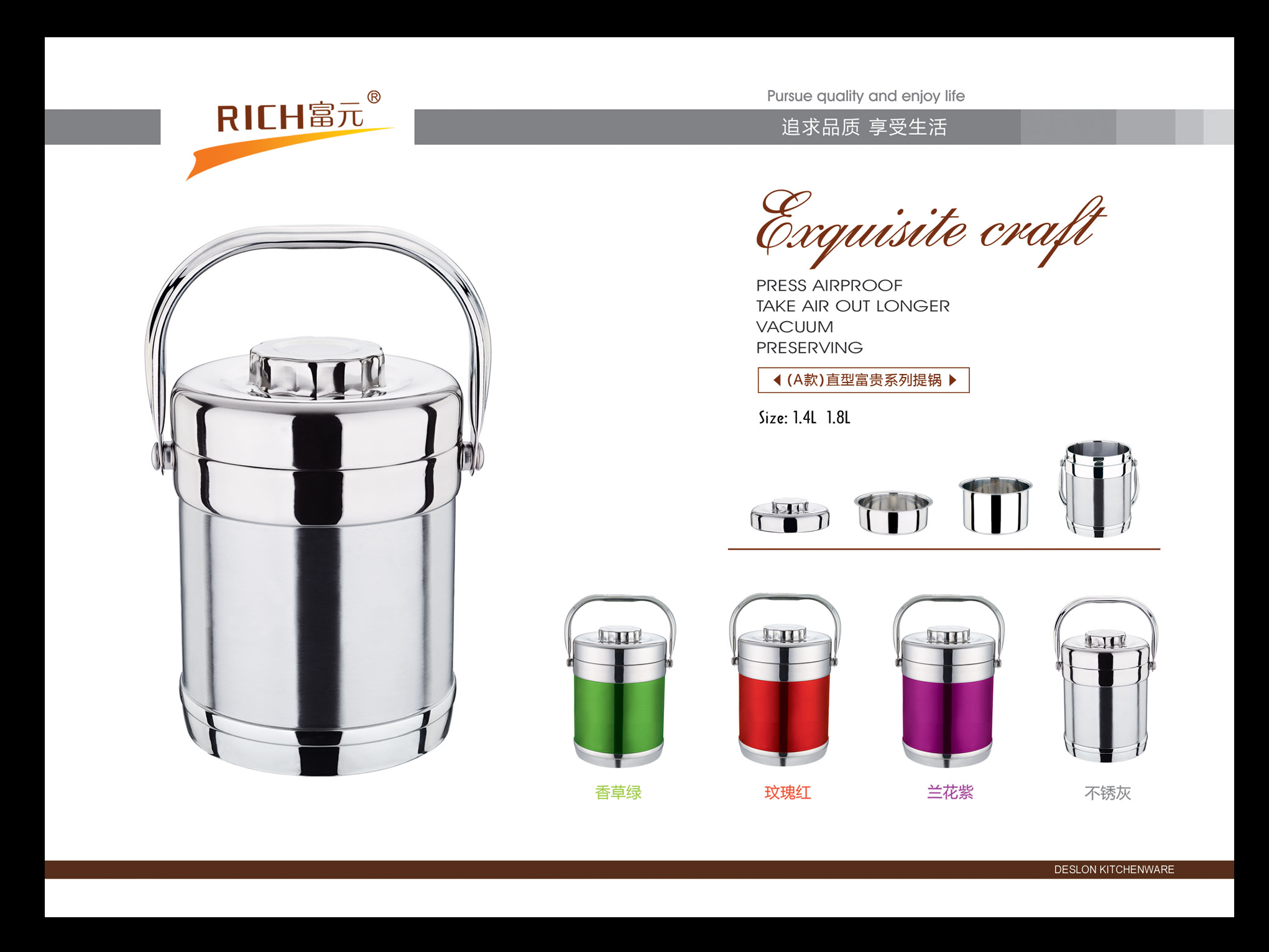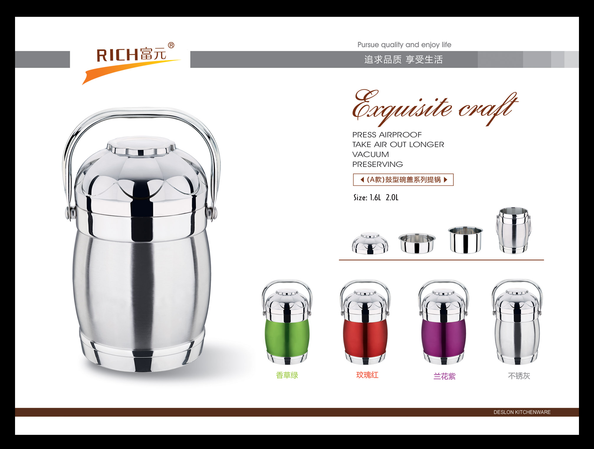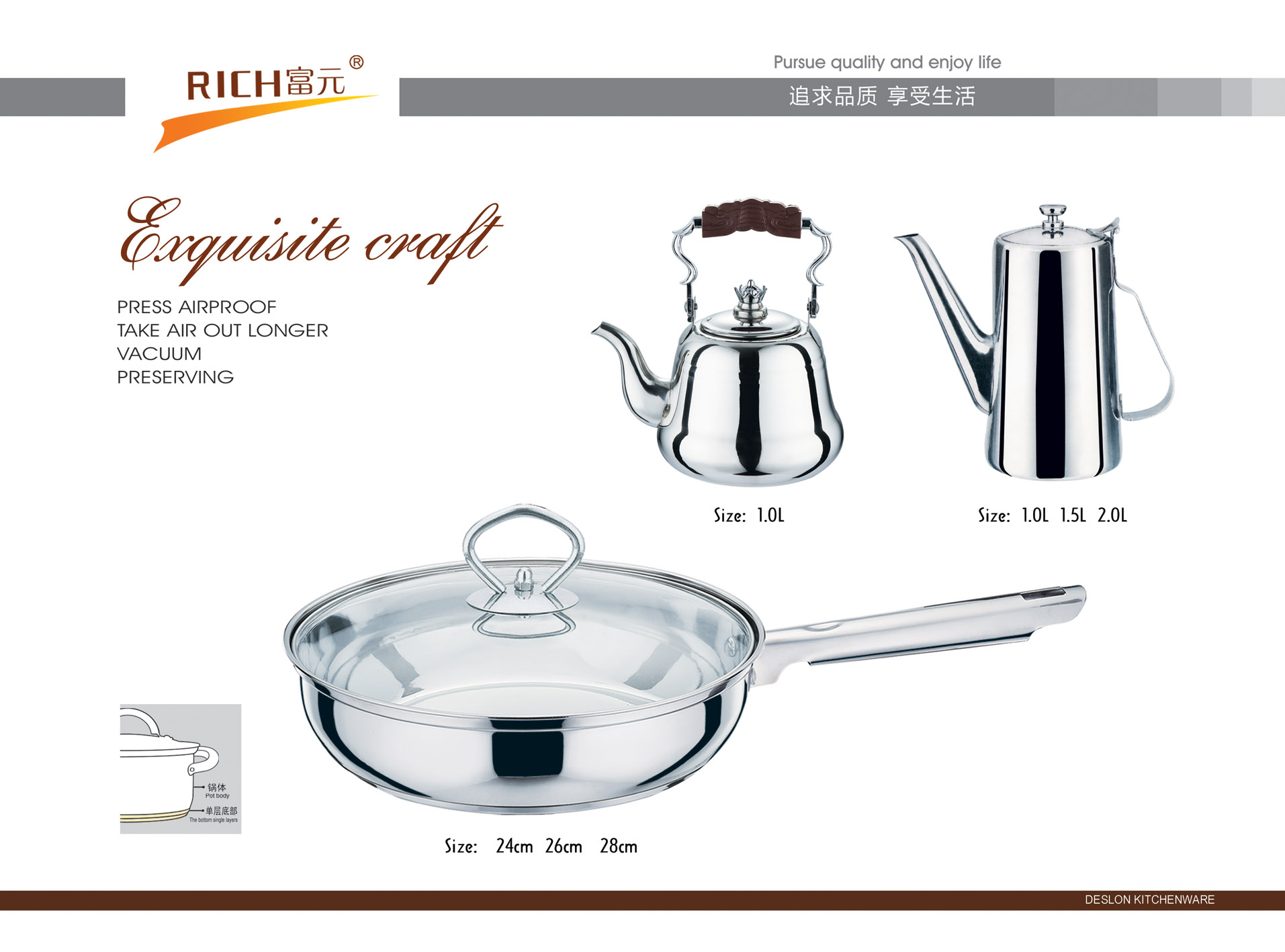 富元五金制品厂始创于1993年,坐落在有中国不锈钢之乡称号的彩塘镇老牌工业区-东里工业区,占地面积约两万余平方,发展至今,已形成具有自己独立设计研发和生产的综合型多元化企业。本公司以市场为导向,以研发设计部门为核心,利用互联网大数据为指导,经过多年的积累,开创出自己独特的不锈钢家居文化。主要产品线有工艺水壶,不锈钢水桶,保温类厨具,欧式不锈钢锅具等不锈钢创意家居产品。在积累的过程中,在逐步研发丰富自身产品线的同时,还为多个国内外知名品牌代工生产.....[详细介绍] |