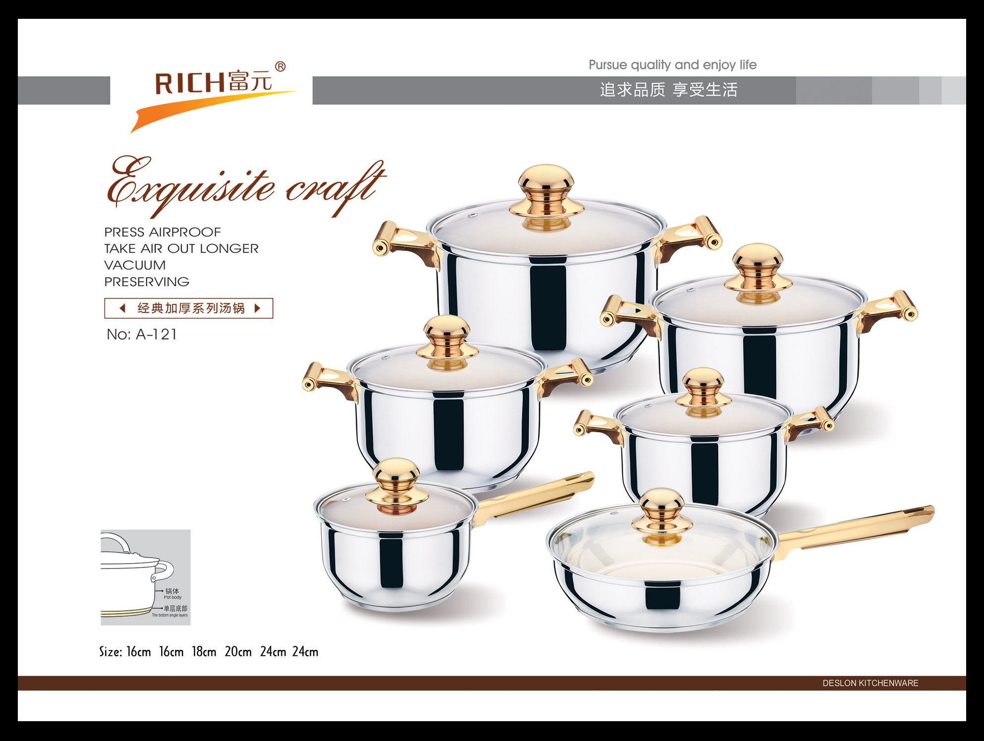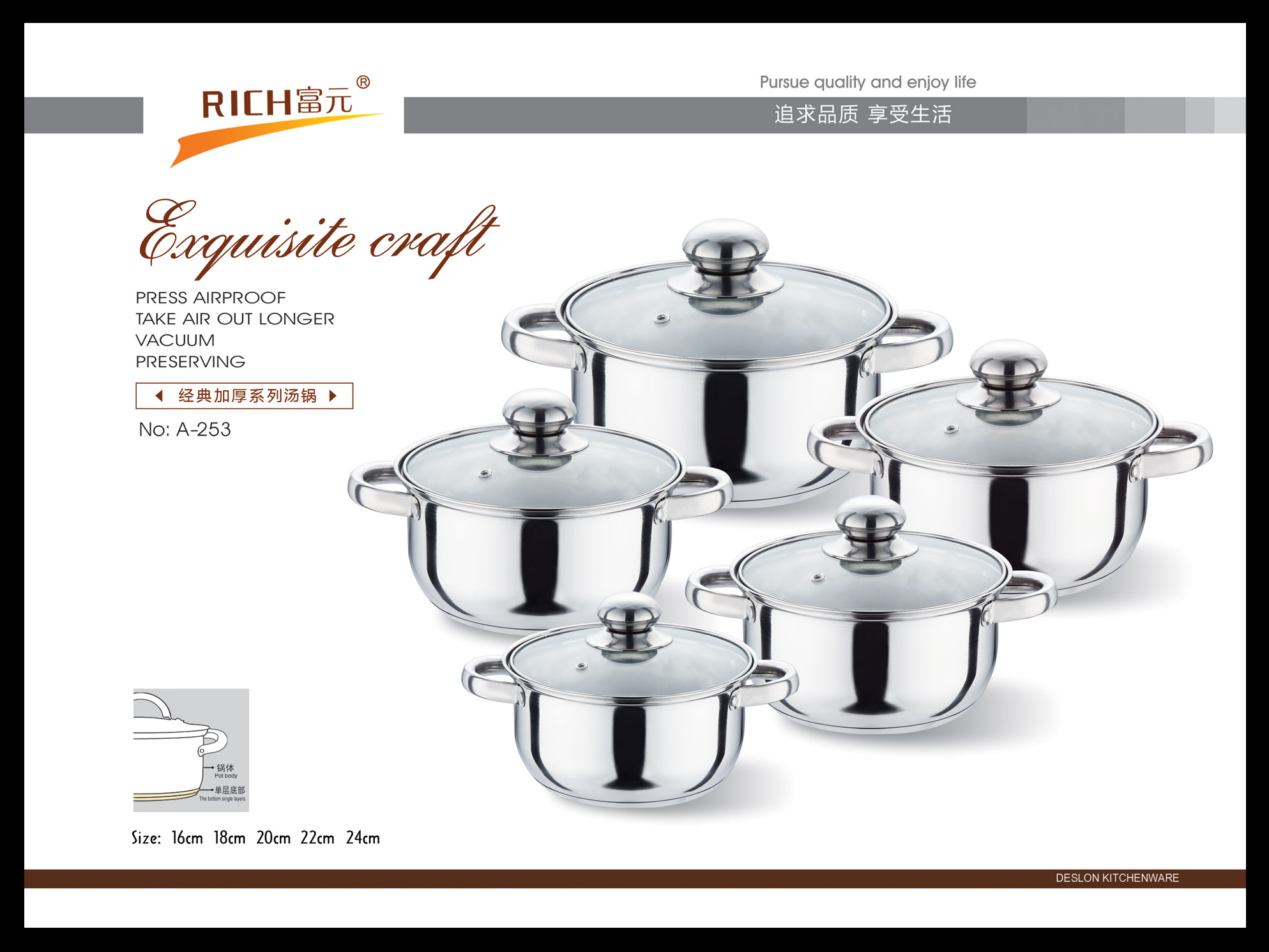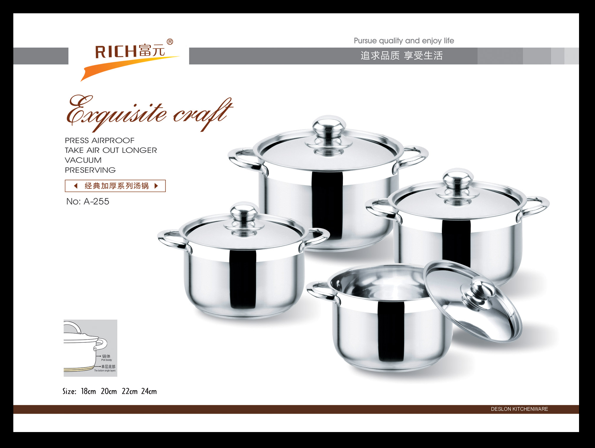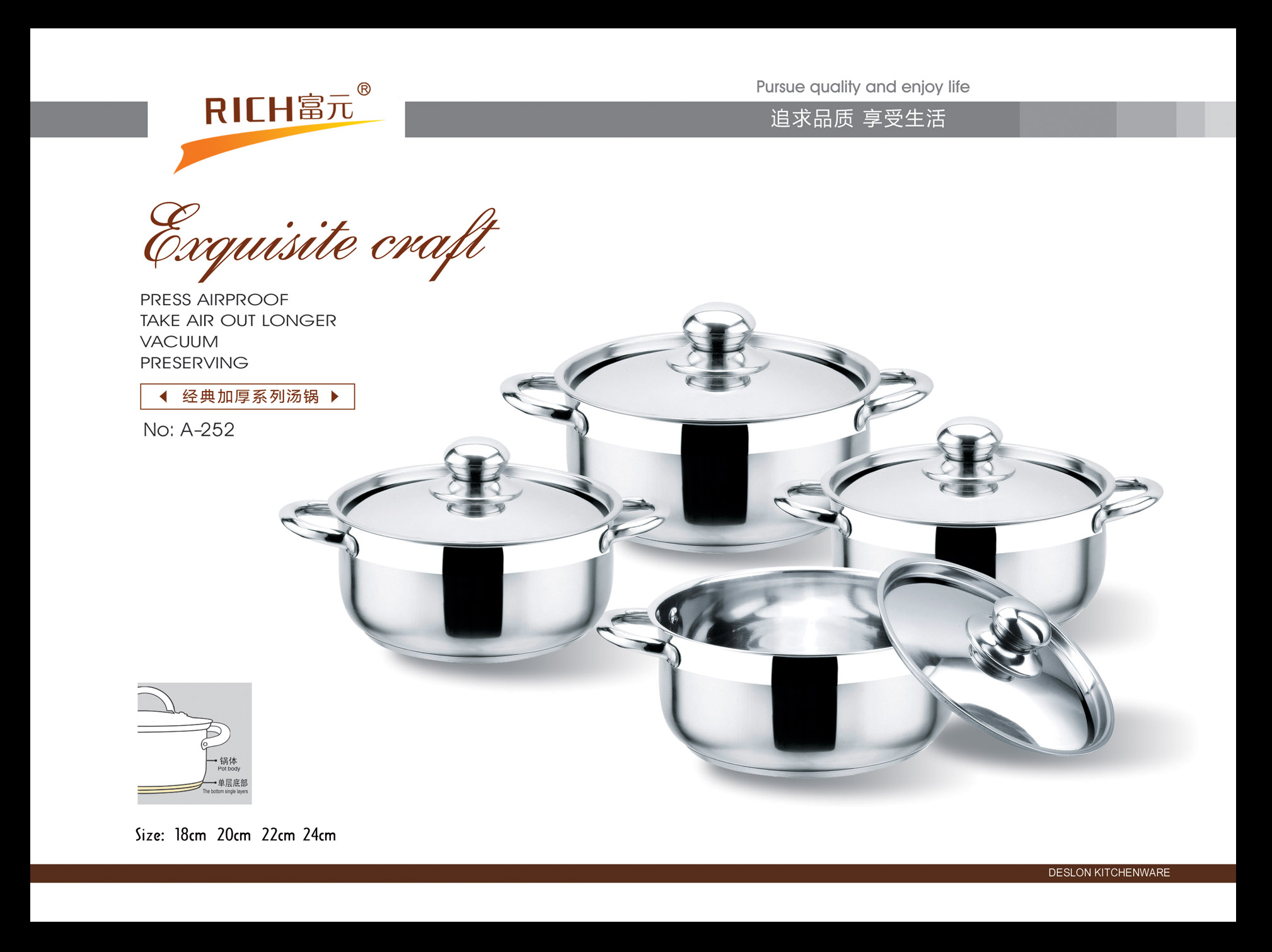 富元五金制品厂始创于1993年,坐落在有中国不锈钢之乡称号的彩塘镇老牌工业区-东里工业区,占地面积约两万余平方,发展至今,已形成具有自己独立设计研发和生产的综合型多元化企业。本公司以市场为导向,以研发设计部门为核心,利用互联网大数据为指导,经过多年的积累,开创出自己独特的不锈钢家居文化。主要产品线有工艺水壶,不锈钢水桶,保温类厨具,欧式不锈钢锅具等不锈钢创意家居产品。在积累的过程中,在逐步研发丰富自身产品线的同时,还为多个国内外知名品牌代工生产.....[详细介绍] |